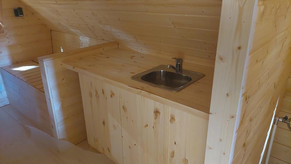 Forest Hut 6 offers a more spacious layout compared to smaller models, making it ideal for families or small groups. Separate sleeping areas, integrated bathroom, and kitchenette ensure a comfortable stay without compromising on compact efficiency.