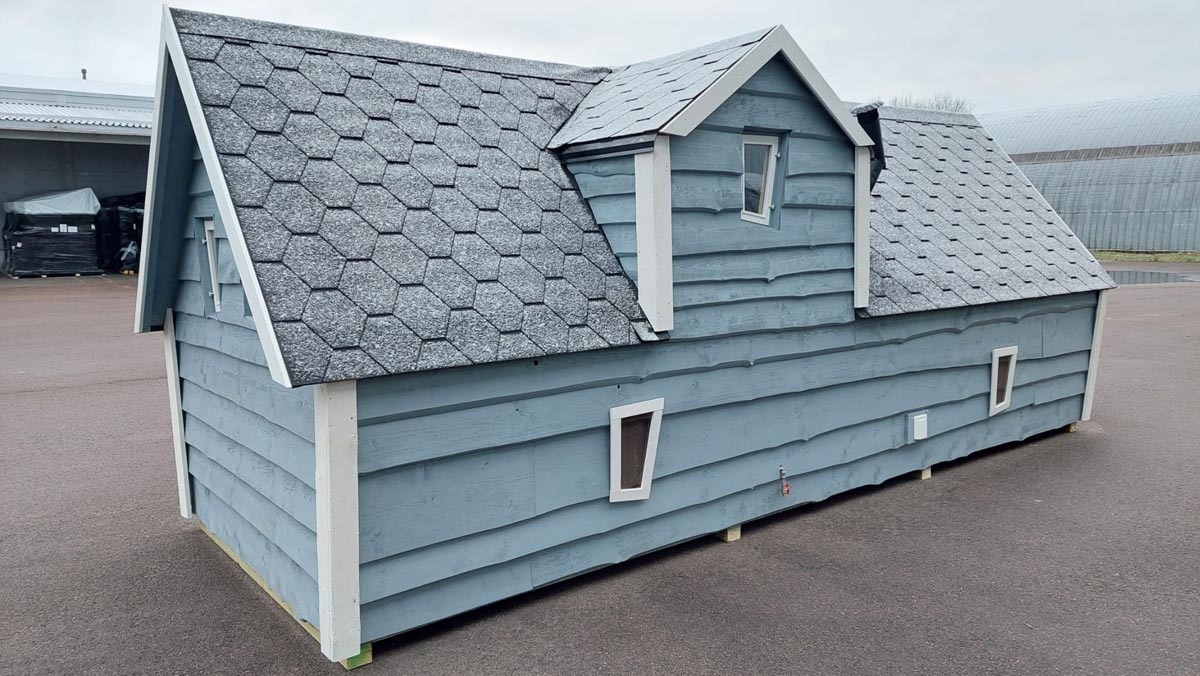 - Rustic shingle roof with decorative chimney
