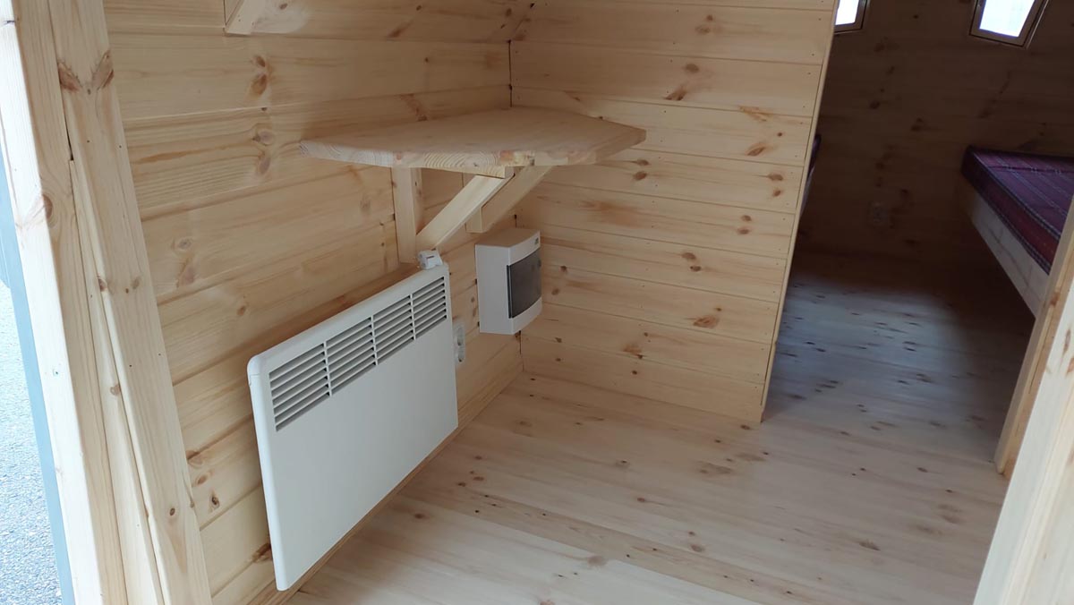 Spacious fully insulated wooden camping house designed for comfortable year-round use. Larger layout allows accommodation for multiple guests while maintaining a cozy and functional interior.