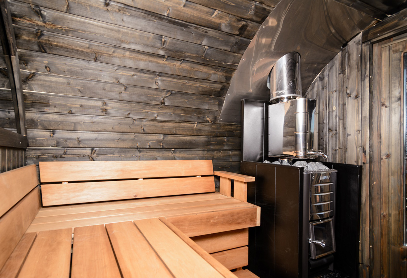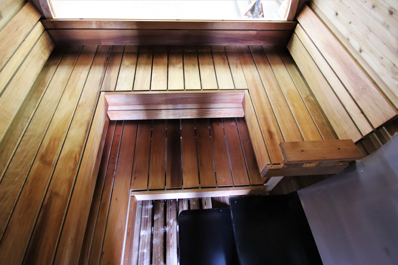 The ALEX De Lux is built for a more open and comfortable sauna experience. The L-shaped benches allow flexible seating positions and comfortably accommodate 4–6 people.