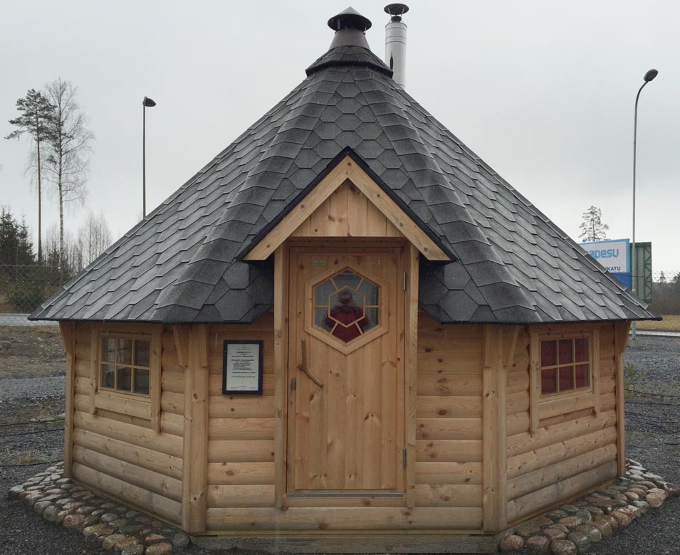 The layout is divided into two functional zones: a private sauna room and a spacious front area. The front room can be customized as a grill area, a fireplace lounge or a cozy relaxation space.