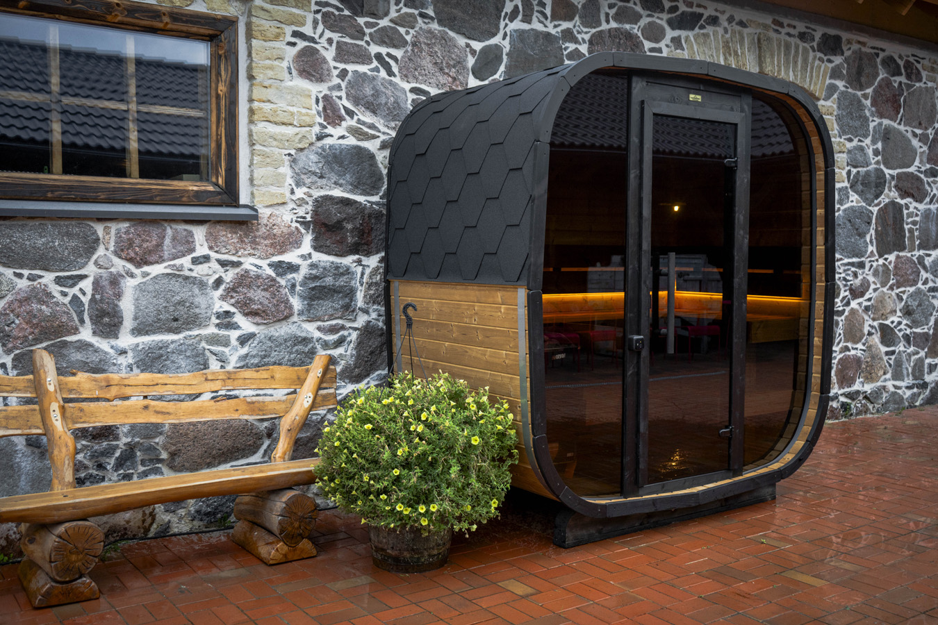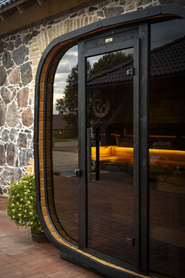 The glass front keeps the interior bright and visually open, while tinted or mirror glass ensures privacy – perfect for closer residential settings.