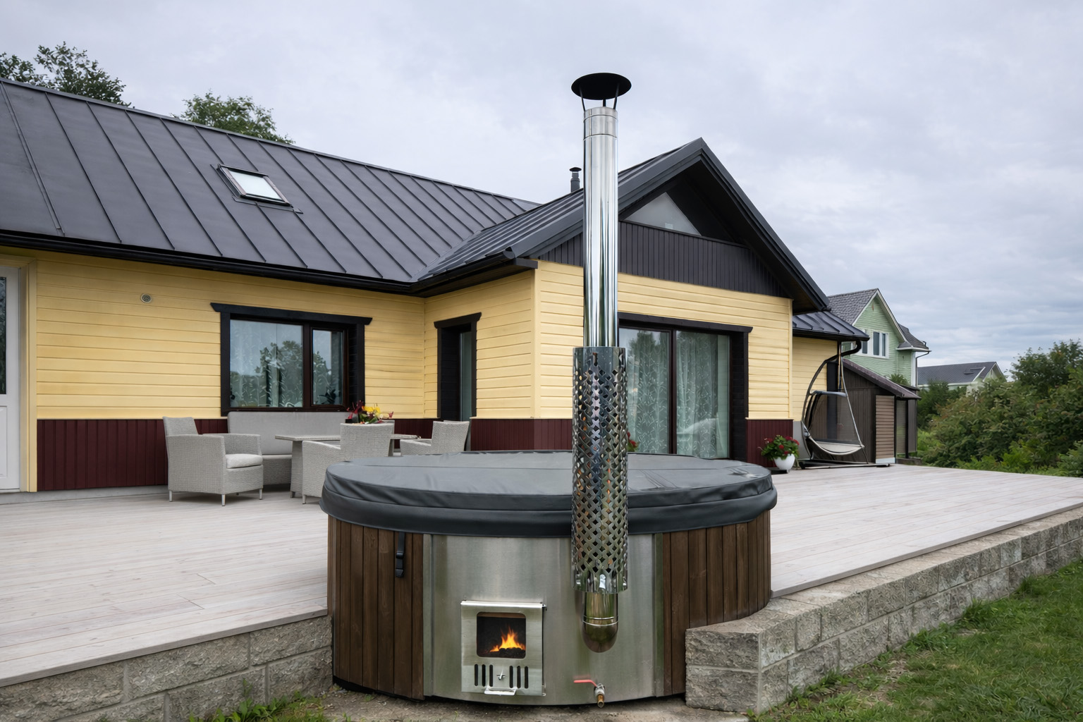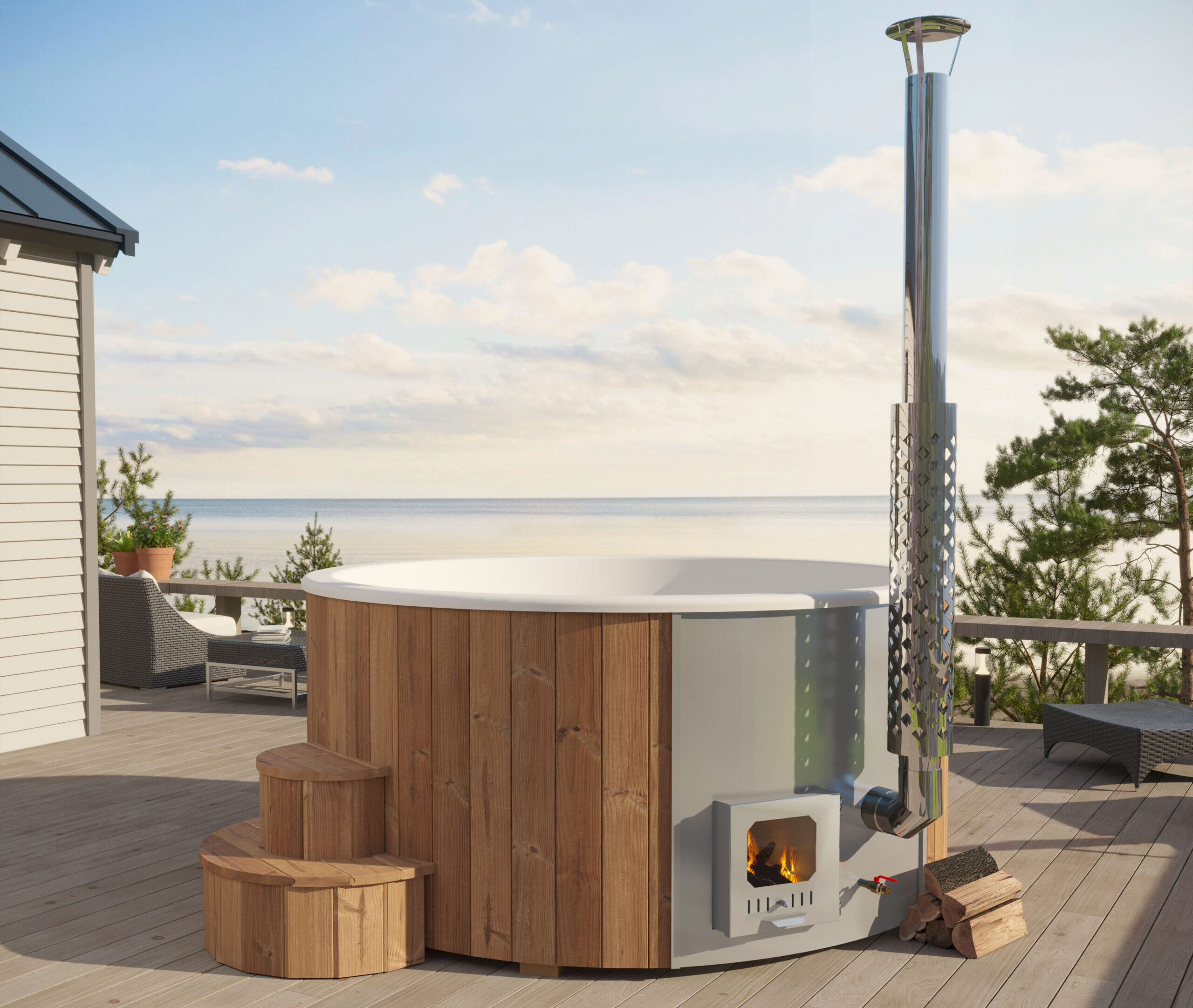 A premium outdoor hot tub with an integrated wood-fired heater, designed for efficient heating, easy maintenance, and year-round relaxation. Combining modern materials with traditional Nordic bathing culture, it creates a comfortable and social outdoor experience.