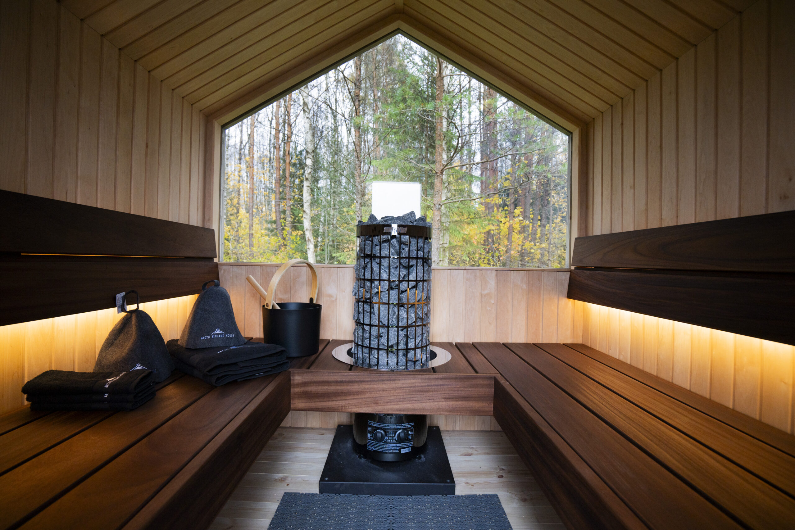 A compact insulated sauna with a classic cabin design and a large panoramic window. FJORD combines traditional aesthetics with modern insulation, offering a cozy and efficient sauna experience for year-round use.