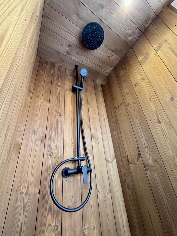 Delivered as a modular insulated structure. Requires a prepared base and connection for water and drainage for full shower functionality.