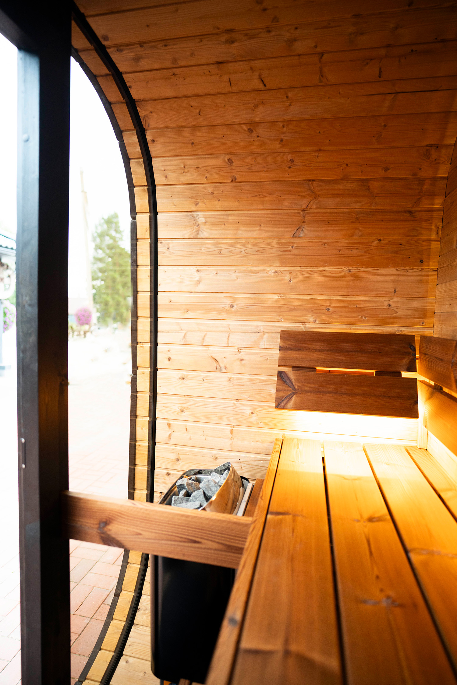 Võimas puu- või elektriküttega keris loob tõelise saunanaudingu igas ilmastikus, samas kui saunaruumi ümar kuju tagab kuumuse ja leili ühtlase jaotumise.